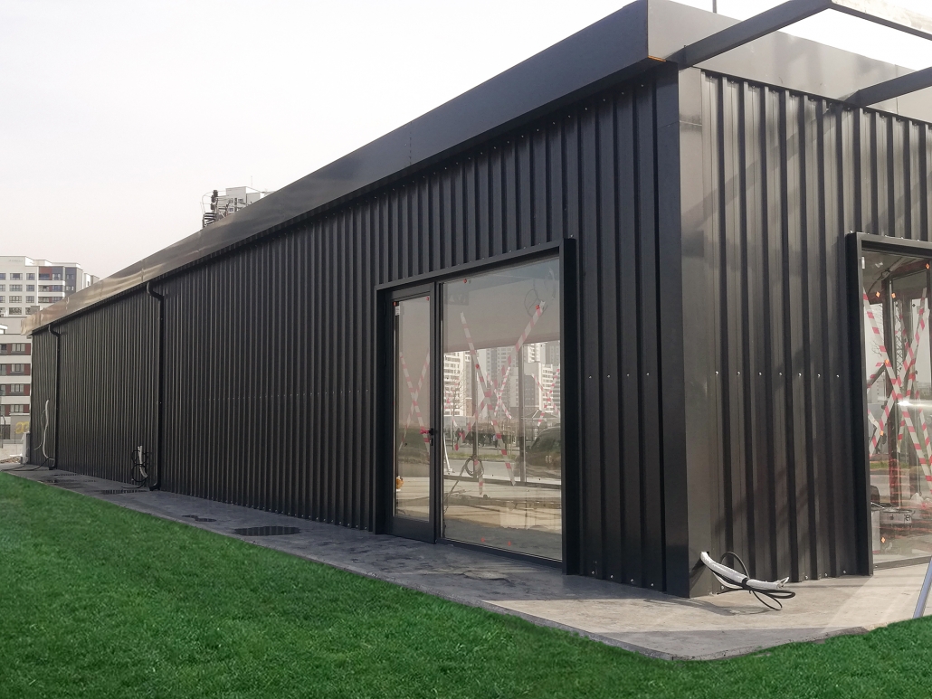 Başakşehir Housing Project Sales Office reference is one of the exemplary projects reflecting the modern and functional office solutions offered by Pramo Prefabrik for large-scale projects. This sales office is designed to offer an impressive first impression to customers and to support a professional service approach. Constructed with light steel construction, the building is earthquake resistant and long-lasting, thus providing a safe and robust working environment. With advanced insulation technologies, it provides energy saving and indoor comfort for four seasons.