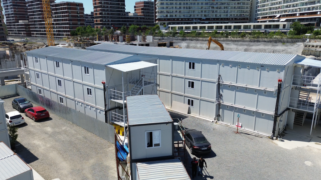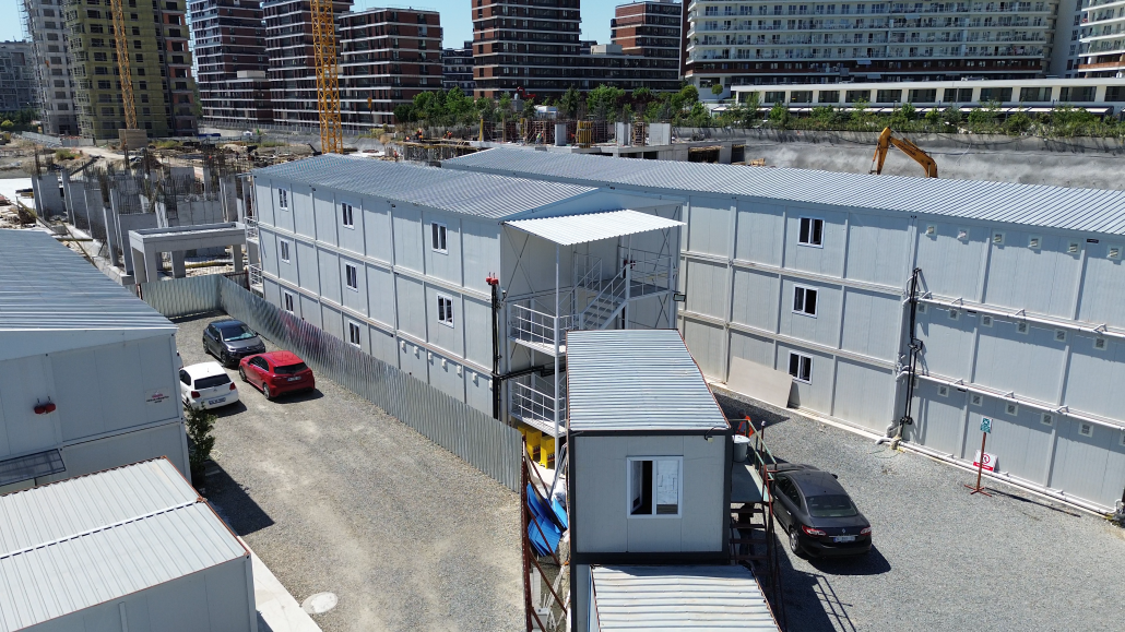 This mobilisation project at Halkalı construction site is an important project in which Pramo Prefabrik successfully provided large-scale and multi-purpose building solutions. Within the scope of the project, 350 square metre double storey office container, 504 square metre worker dormitory, 840 square metre worker dormitory group and 206 square metre prefabricated dining hall were constructed. A total of 45 production and assembly operations were completed in a short time, enabling the project to be realised quickly and smoothly.